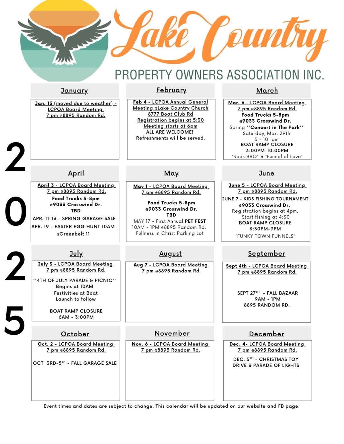 LCPOA needs your help in improving this wonderful neighborhood. This organization’s mission is to promote community welfare and pride amongst the resident property owners of Lake Country Estates and Secret Harbour. To achieve this mission, membership dues and donations are used to fund the following key services: